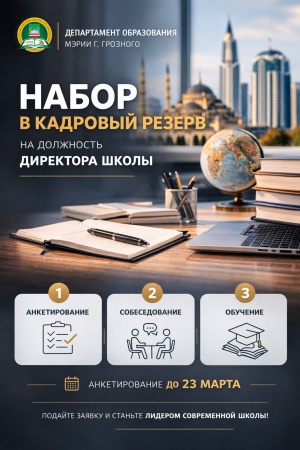 В ГРОЗНОМ ОБЪЯВЛЕН НАБОР В КАДРОВЫЙ РЕЗЕРВ ДИРЕКТОРОВ ШКОЛ В РАМКАХ ПРОЕКТА «ДИЗАЙНЕРЫ ОБРАЗОВАНИЯ».