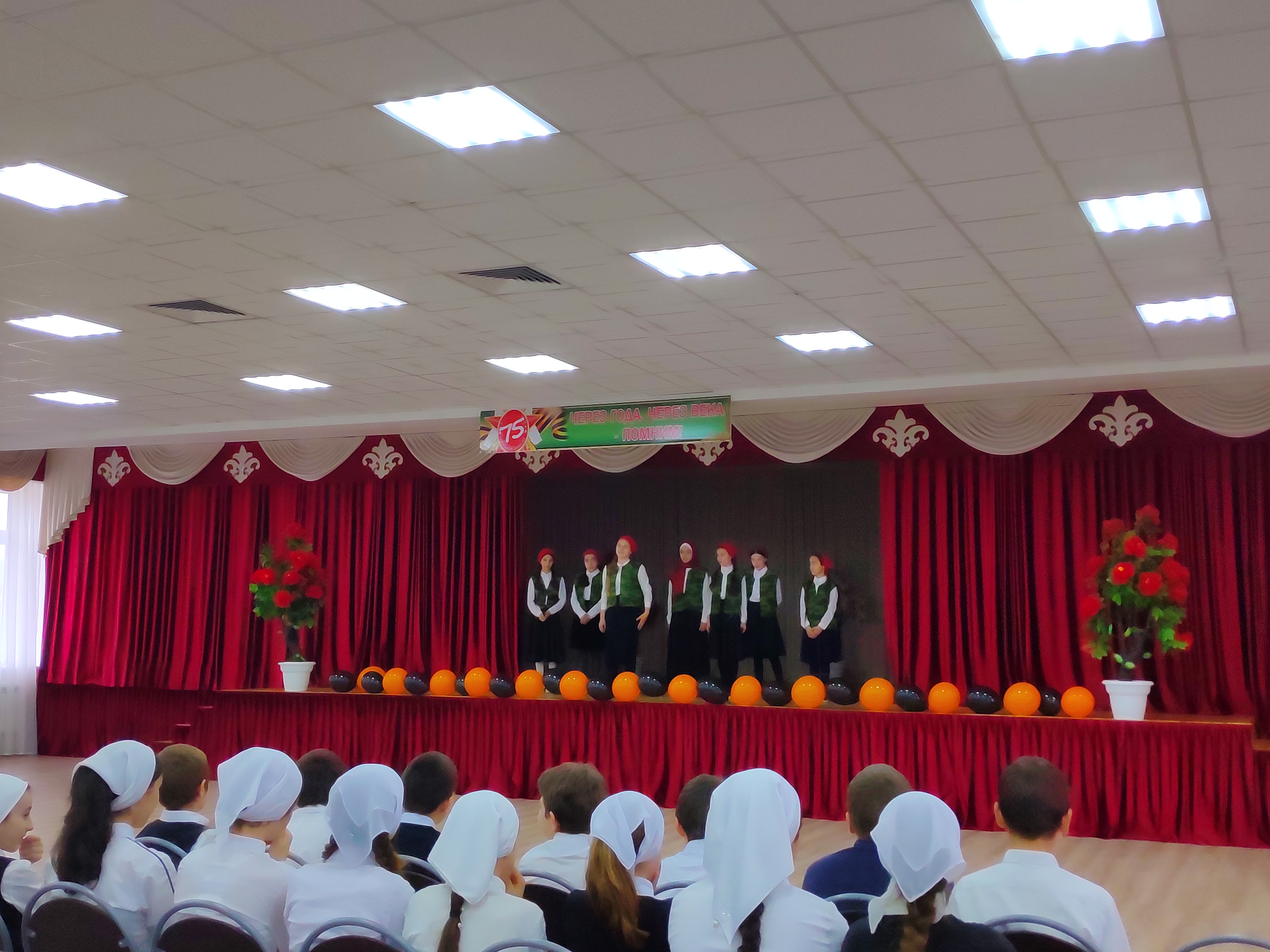 В школе прошло общешкольное мероприятие среди 6-х классов «Через года, через века – помним». Ведущие очень интересно вели мероприятие. На мероприятии ребята читали стихи, пели песни, ставили сценки.