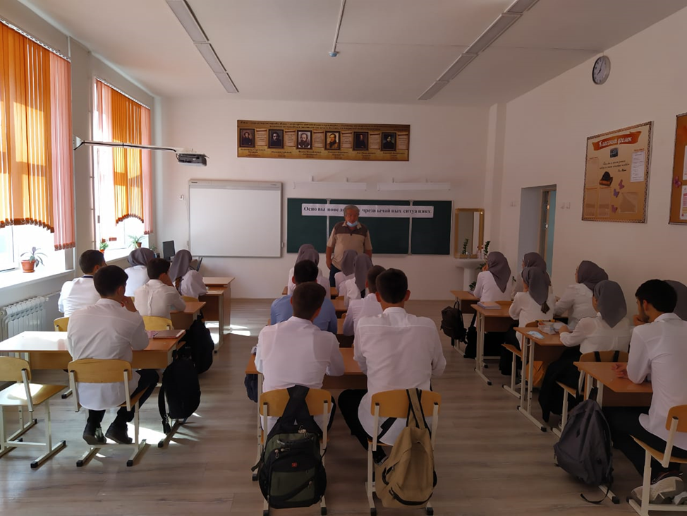 Преподаватель биологии и химии Ханчукаев А. Р., провел урок на тему: «Основы поведения в экстремальной ситуации».