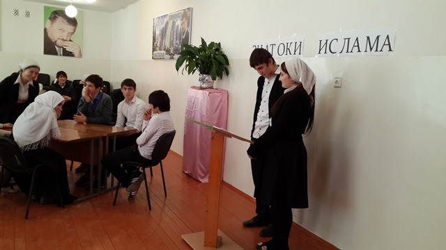 30.01.2015В МБОУ «СОШ с.Садовое» состоялся конкурс «Знатоки Ислама». За призовые места боролись учащиеся 7-10-х классов, которые объединились в команды. Учащиеся отвечали на общие вопросы о религии, рассказывали суры из Корана. Свои познания в основах Ислама продемонстрировали на хорошем уровне.