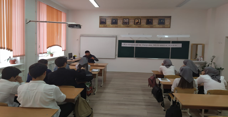 Педагог ДНВ – Исмаилов Р.Э. провел беседу – лекцию с учащимися 11 класса на тему «Жизнь и деятельность Пророка Мухаммада (с.а.в.)»