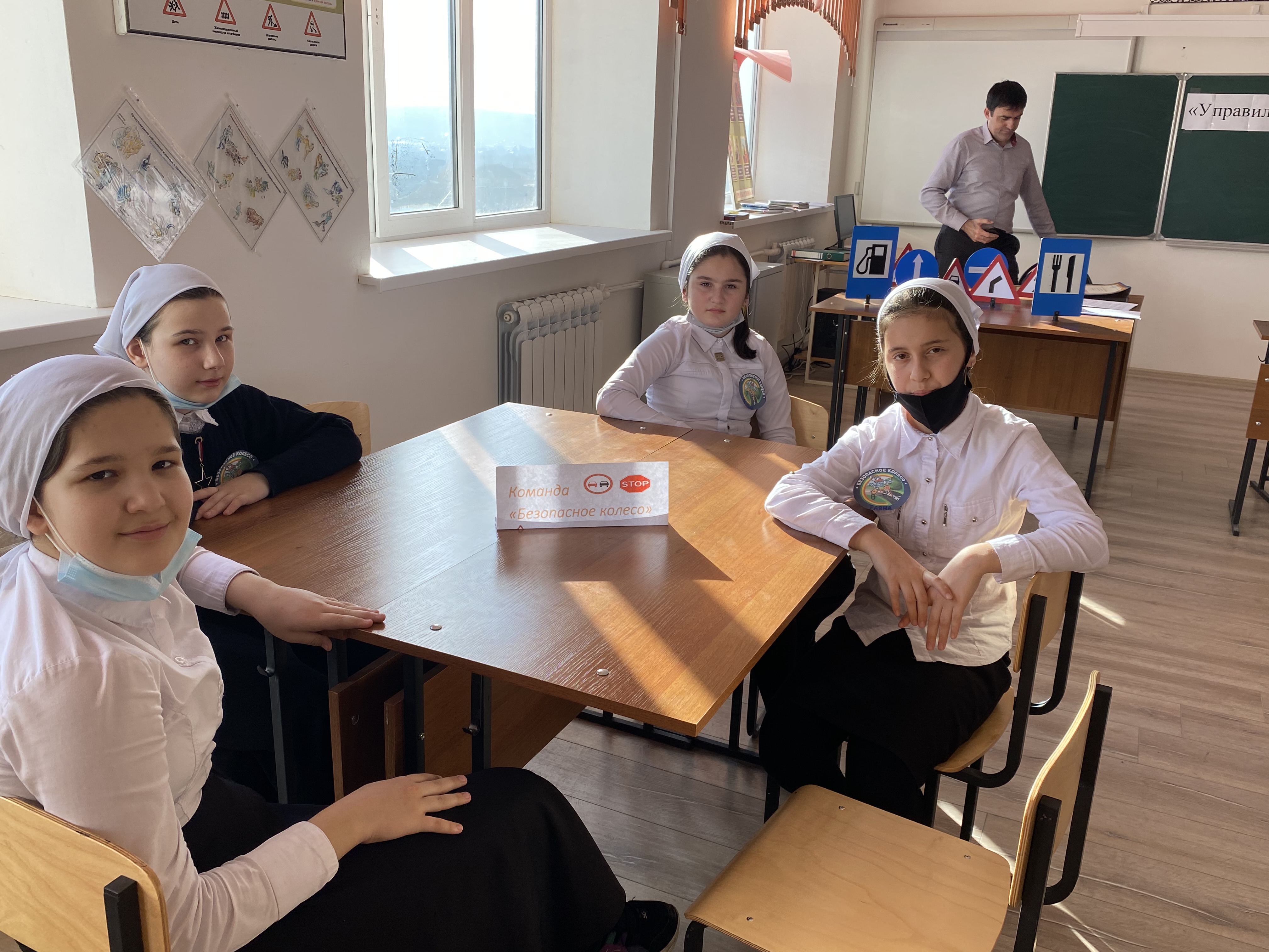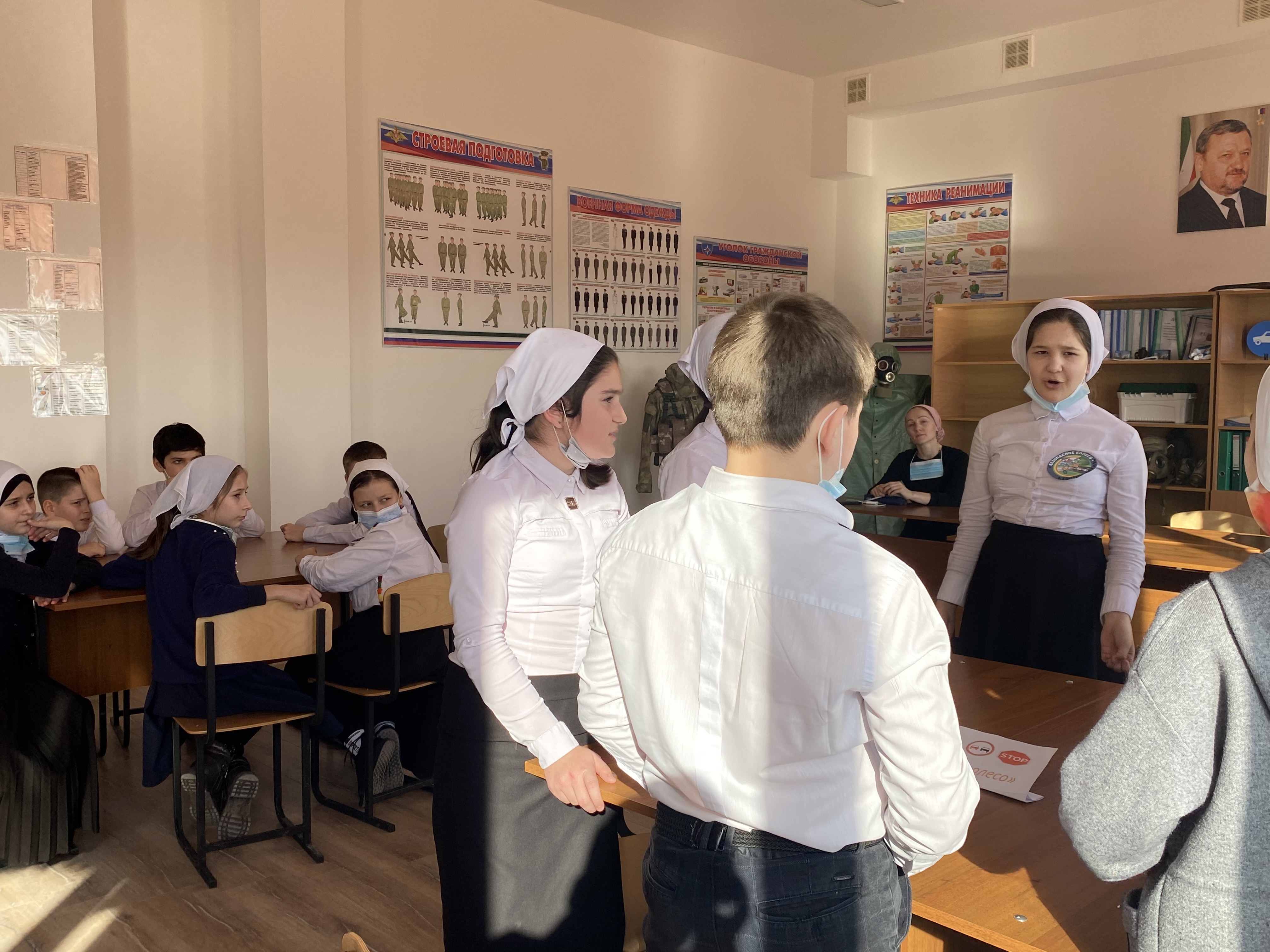 В ходе мероприятия учителем ОБЖ Арсаев С-А.М. были использованы наглядные пособия и материалы, входящие в комплект оборудования кабинета ПДД.