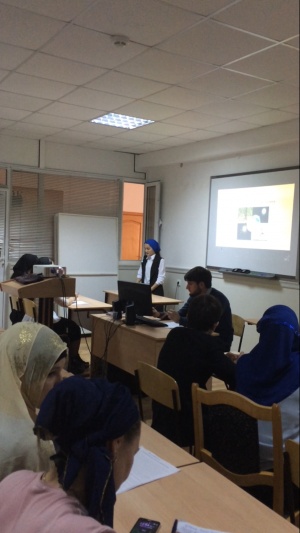 Зубайраева Петимат Рамзановна ученица 10а класса МБОУ «СОШ с.Садовое», участница конференции «Мост в науку». Выступала с докладом и презентацией по теме: «Закон всемирного тяготения».