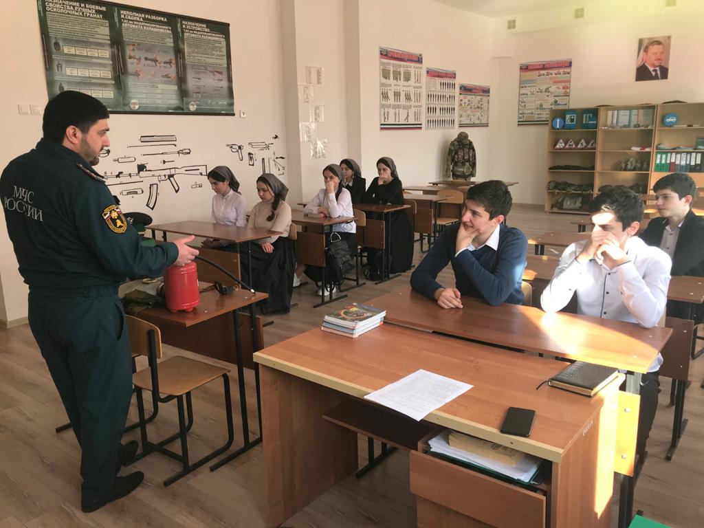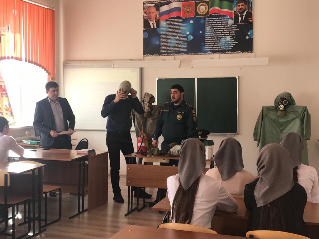В ходе урока обучающиеся посмотрели презентацию по теме и ответили на вопросы учителя ОБЖ о правилах поведения при возникновении ЧС. В 11 классе были проведены соревнования по использованию индивидуальных средств защиты – противогаза и ОЗК. В заключение было отмечено, что полностью избежать возникновения пожаров в быту невозможно, но уменьшить вероятность возгораний за счет снижения отрицательного влияния человеческого фактора необходимо. Для этого каждый человек должен знать общие правила поведения в области пожарной безопасности и соблюдать их в повседневной жизни.В мероприятии принимал участие старший инспектор Главного управления МЧС России по Чеченской Республике Ангаев Ш.А.