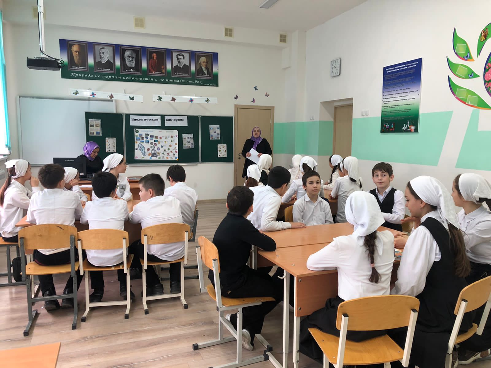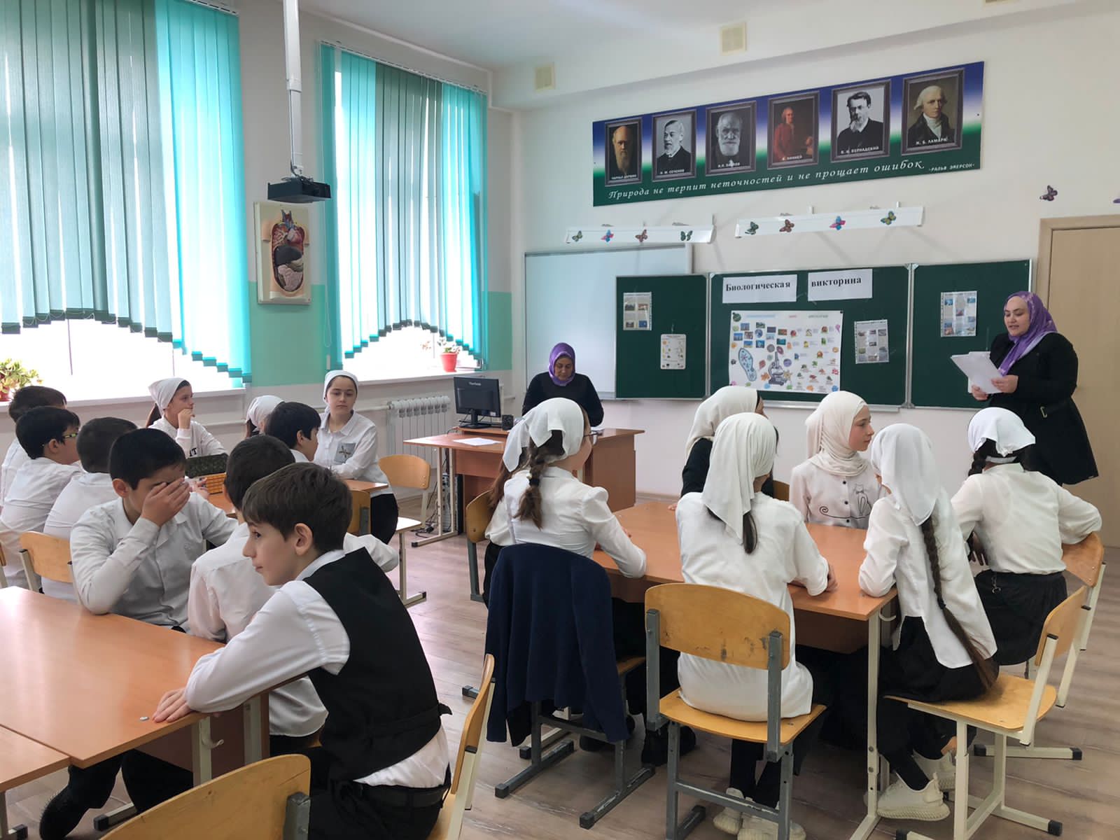 11.02.2022В рамках реализации национального проекта «Образование» с целью развития познавательного интереса к биологии через внеурочные формы работы, воспитания у учащихся экологической культуры и патриотизма в МБОУ «СОШ с.Садовое им. А-Х. Кадырова» 11 февраля 2022 года, учителями биологии Алиевой З.М. и Дандаевой Х.М. была проведена «Биологическая викторина» среди учащихся 5 «а», «б» и «в» классов.
