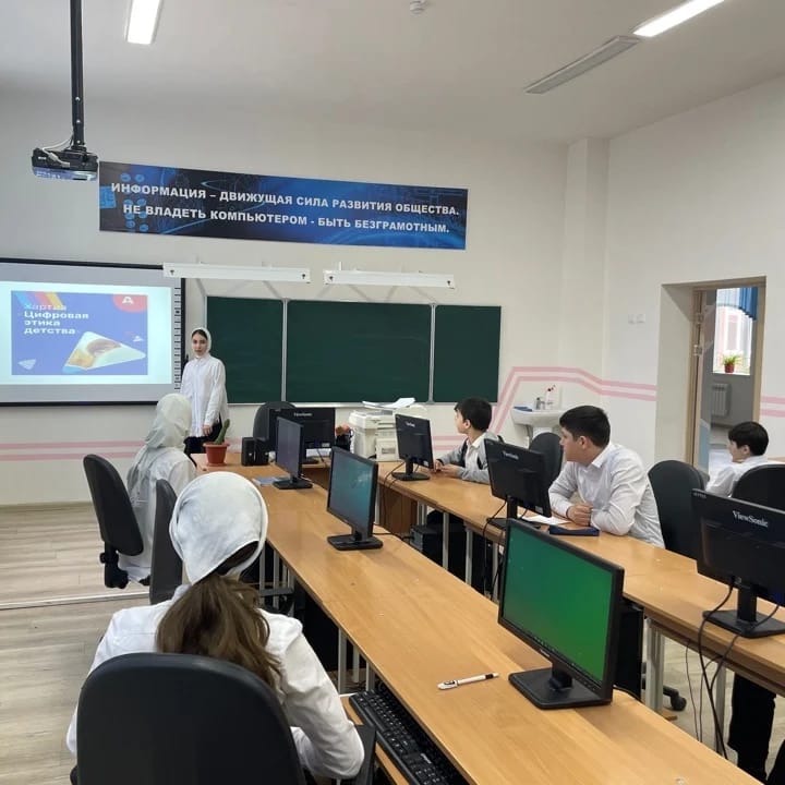 28.02.2022В МБОУ «СОШ с. Садовое им. А-Х. Кадырова» Тазбиева М.А. провела классный час на тему: "Хартия. Защита детей в цифровой среде".