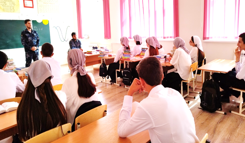 Следователь отдела СУ УМВД России по г. Грозный лейтенант юстиции Эльмурзаев Р.М. провел беседу с обучающимися 10-х классов на тему: "Экстремизм – проблема современности"