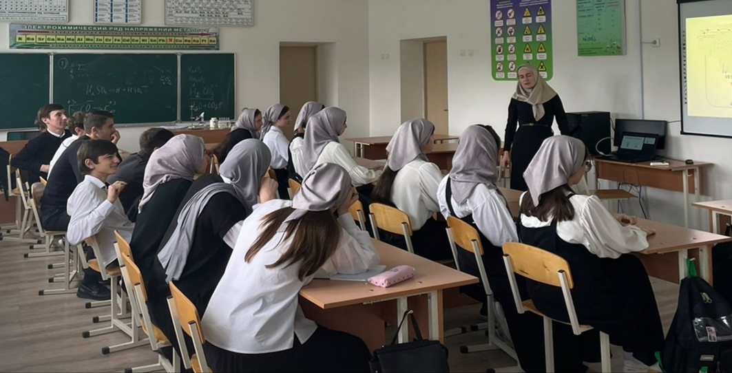 23.11.2022Сотрудники Грозненского межрайонного следственного отдела следственного управления Следственного комитета Российской Федерации по Чеченской Республике Хамидов И.И. и Гамаев М.А., с целью, обеспечения информационной безопасности несовершеннолетних обучающихся путем привития им навыков ответственного и безопасного поведения в современной информационно-коммуникативной среде, провели беседу с учащимися 8-х классов.
