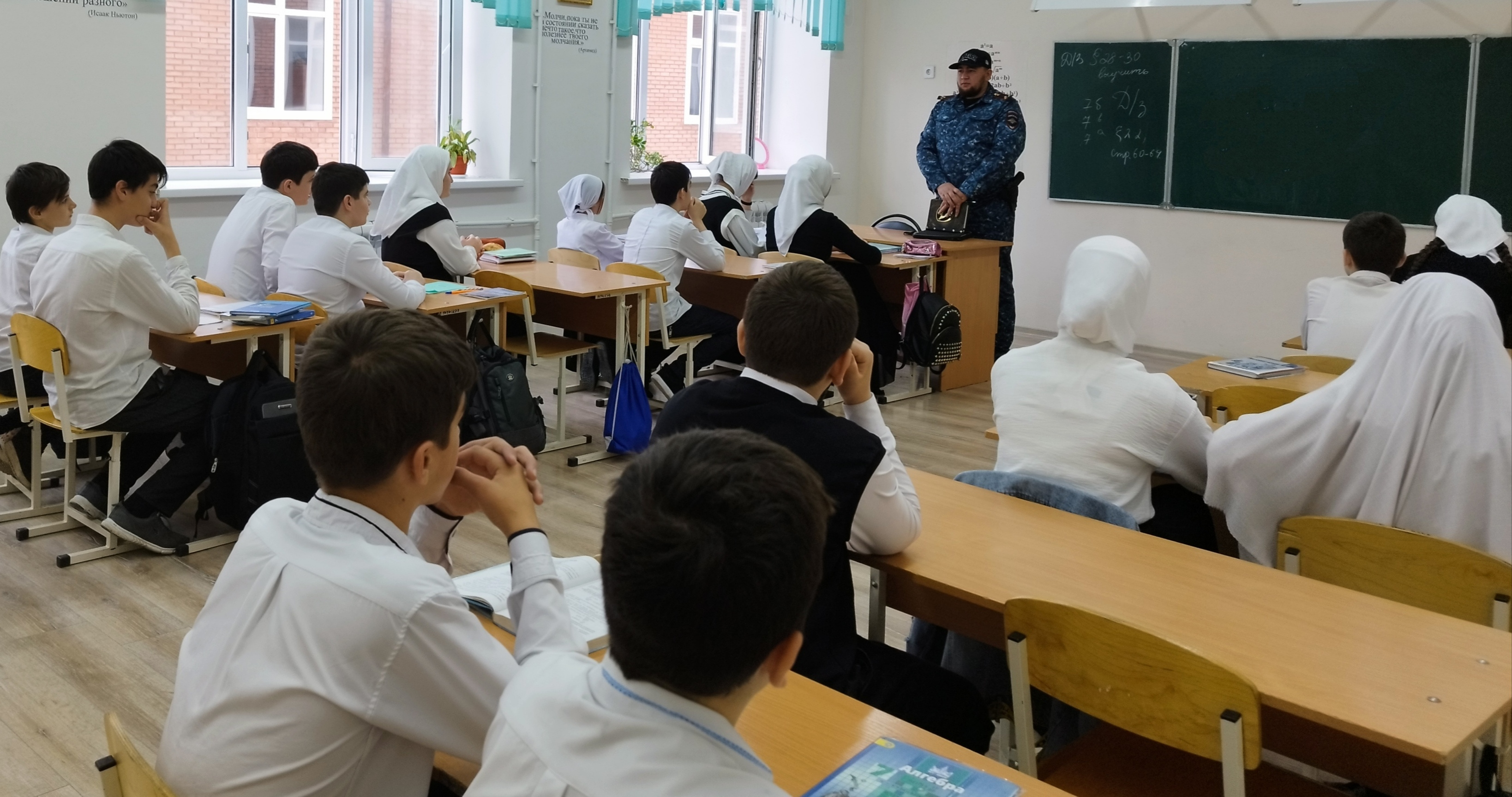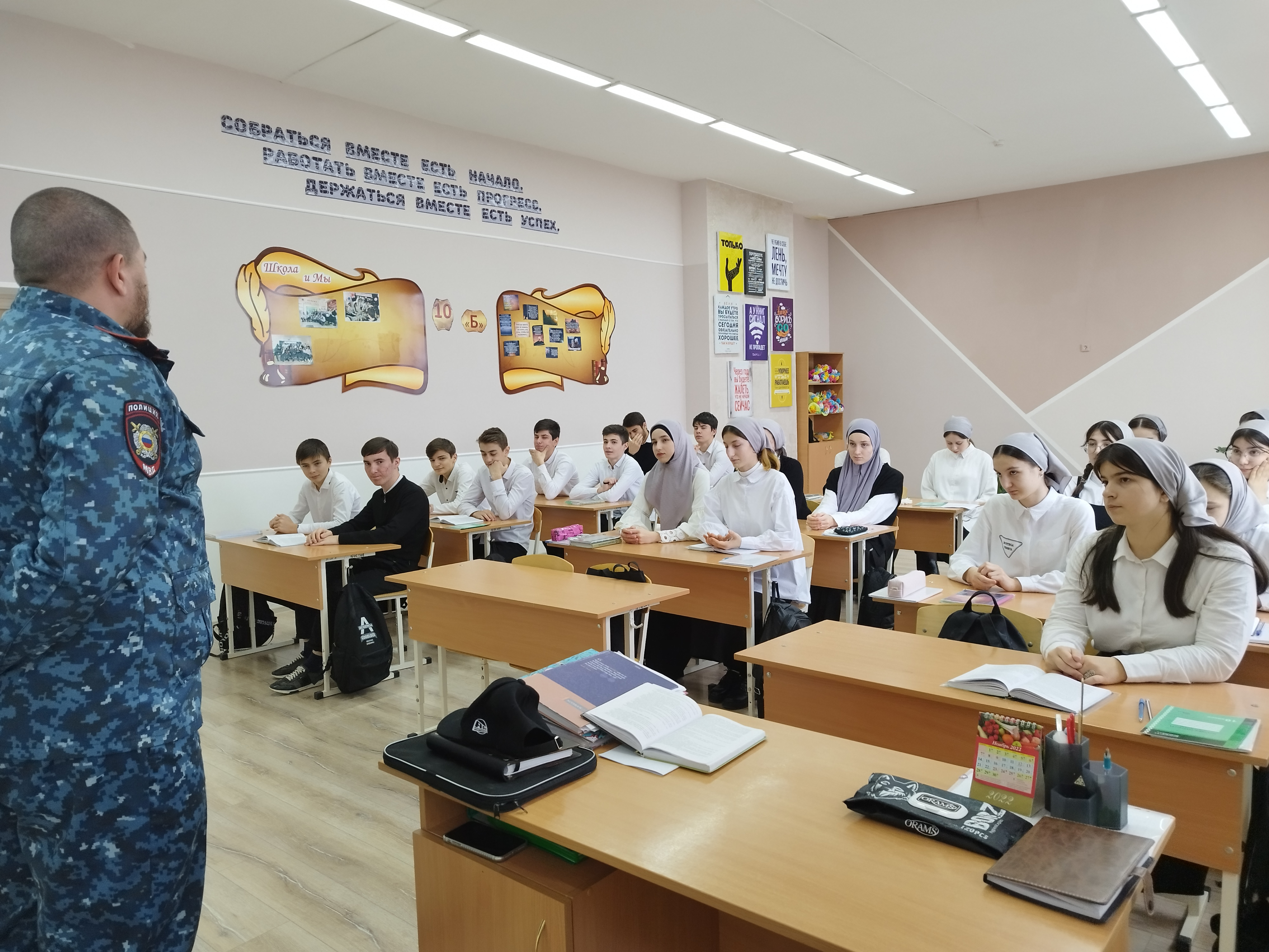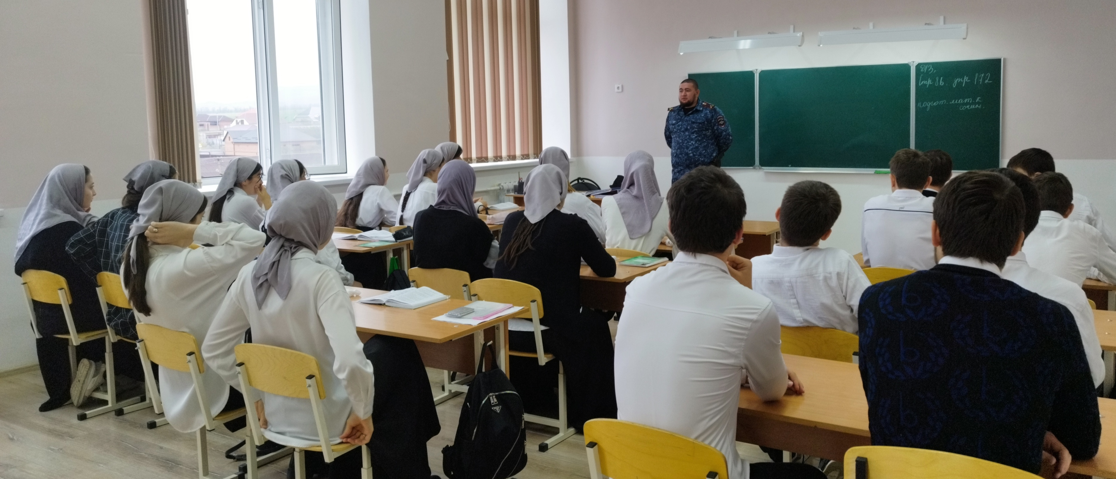 16.02.2023С целью, ознакомления обучающихся с возрастом наступления уголовной ответственности; углубления знания обучающихся об уголовном наказании несовершеннолетних, инспектор ОПДН ОМВД России по Грозненскому району старший лейтенант полиции Дидаев А.А. 16 февраля 2023 г. провел беседы с обучающимися 10-11-х классов МБОУ «СОШ с.Садовое им. А-Х. Кадырова»