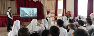 Все мероприятие сопровождалось видеофрагментами, как современными, так и хроникальными, времен Великой Отечественной войны. Обучающимся в доступной форме рассказали, что Победа досталась огромной ценой. То, что мы называем «битвой», в действительности являлось серией войсковых операций.