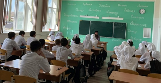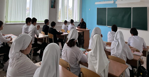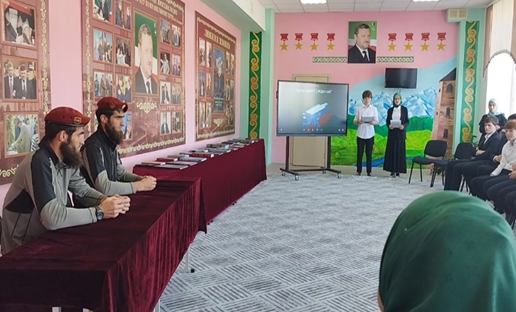 5. Совместно с сотрудниками МВД ОПДН Грозненского муниципального района Гиназовым А.И., педагогом по ДНВ Исмаиловым Р.Э. и с приглашением участников СВО на Украине проведены профилактические мероприятия, направленные на сохранение единства и дружбы народов, толерантности, патриотизма.