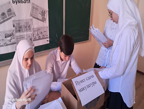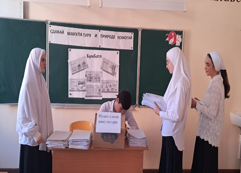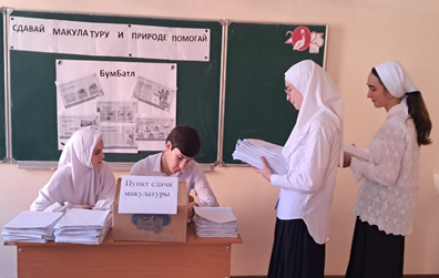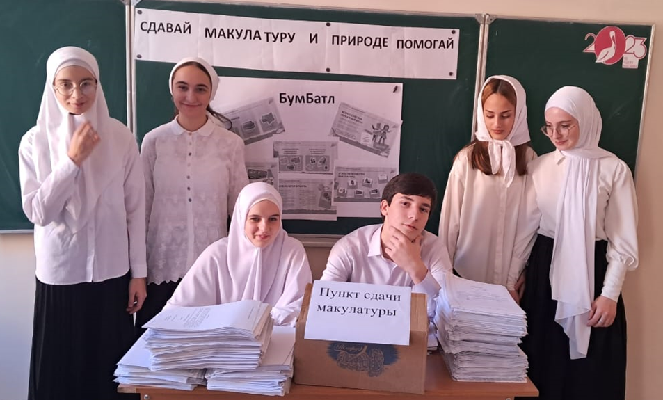 11.11.2023Во исполнении копии письма министра природных ресурсов и охраны окружающей среды чеченской республики А.А. Лечхаджиева от 04.10.2023 года № 3899 обучающиеся МБОУ «СОШ с.Садовое им. А-Х. Кадырова», совместно с волонтерским отрядом «В ритме жизни» приняли участие во Всероссийской акции по сбору макулатуры «Бумбатл».