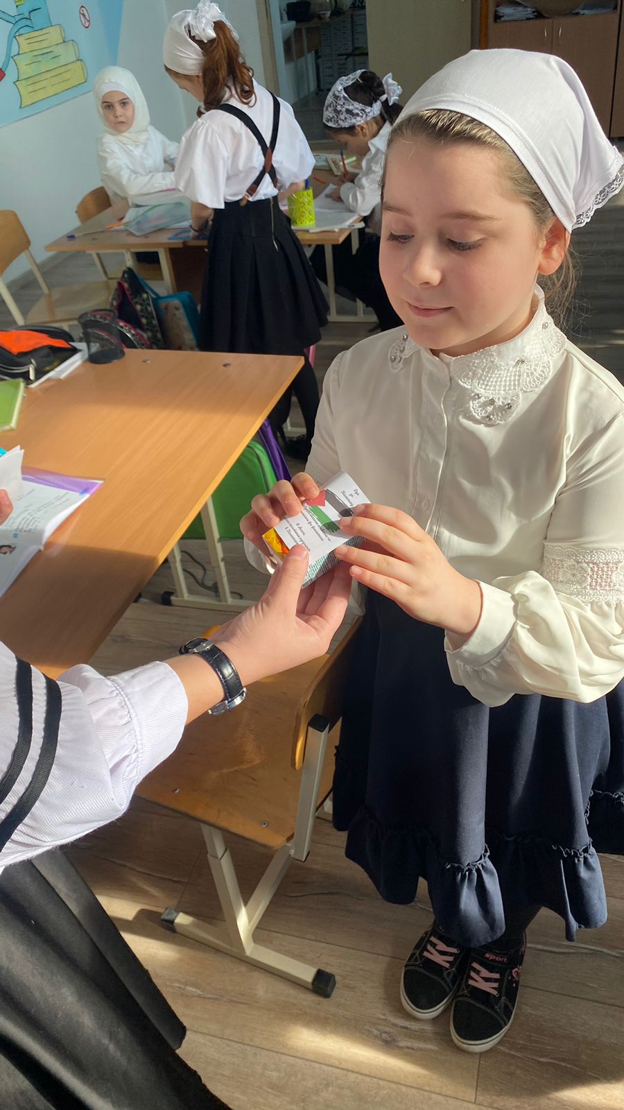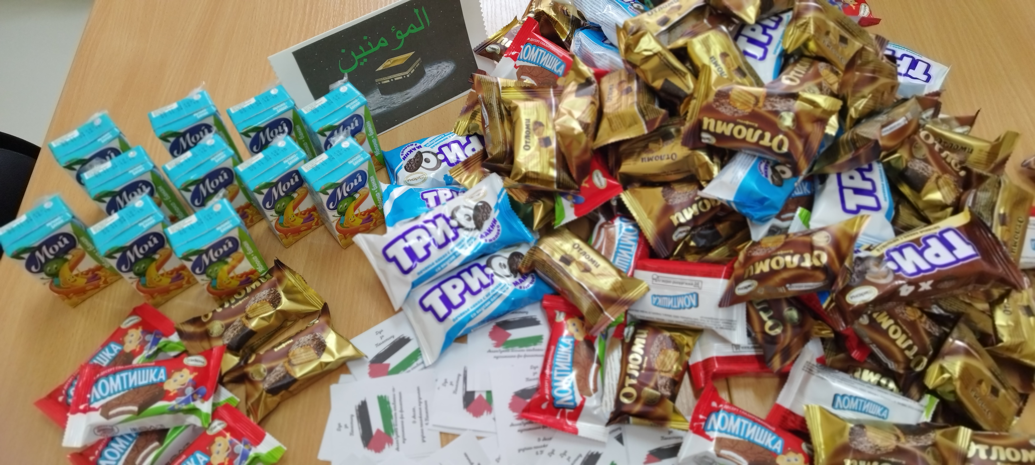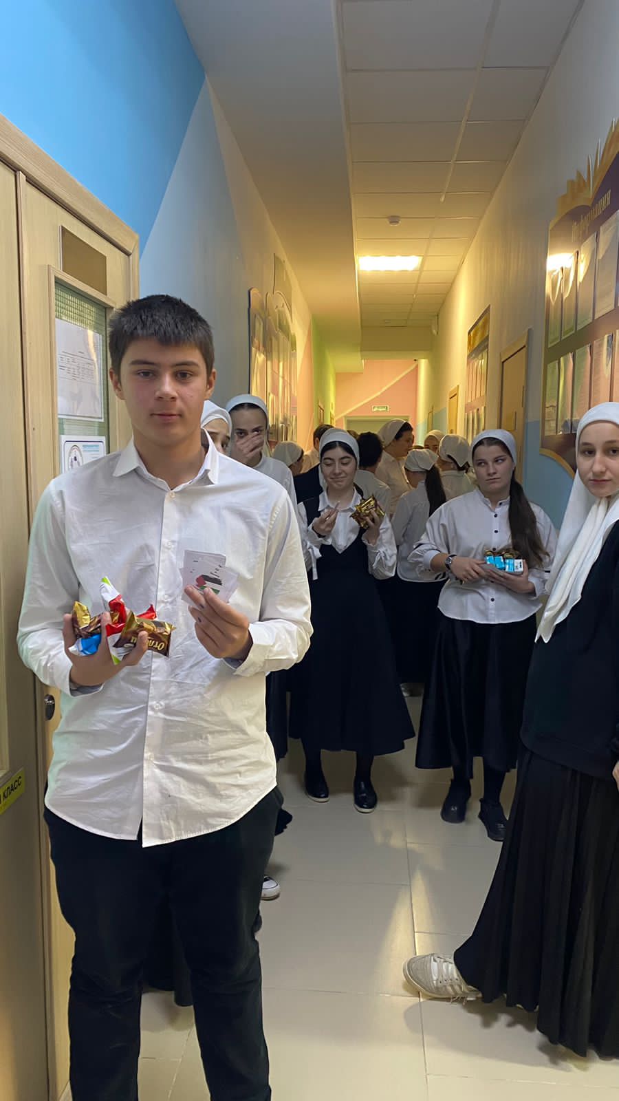 Также в школе 30 ноября 2023 года волонтерским отрядом «В ритме жизни» и обучающиеся 8 «в» класса совместно с классным руководителем Ильясовой А.У. провели акцию под названием «Возьми шоколадку и сделай дуа за Палестину».