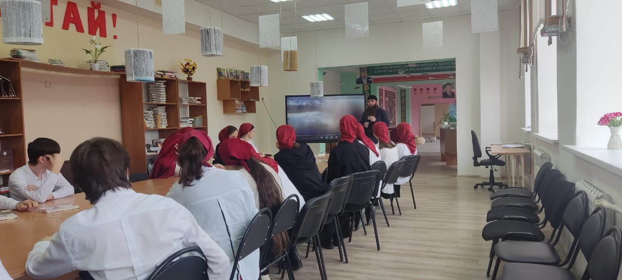 22.12.2023Педагогом по ДНВ Исмаиловым Р.Э. проведен кинолекторий «Кунта-ХаджиКишиев -- незабвенный чеченский святой».