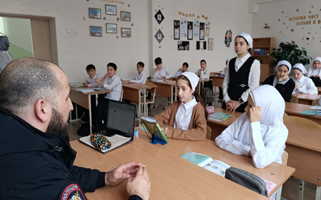 Также инспектором ОПДН ОМВД России по Грозненскому муниципальному району лейтенанту полиции Гиназовым А.И. проведены профилактические беседы «Террору-НЕТ!!!»