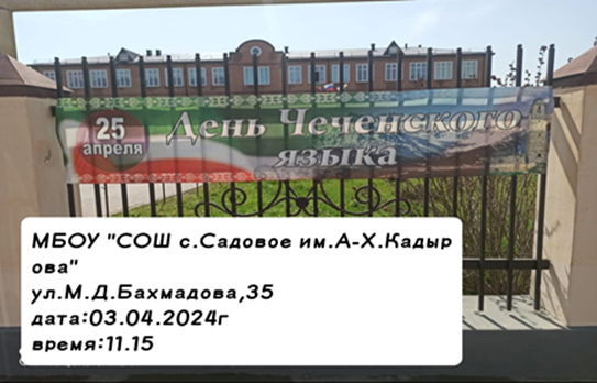 03.04.2024В соответствии с планом работы в МБОУ «СОШ с. Садовое им. А-Х. Кадырова» с 02 по 23 апреля 2024 года с целью популяризации чеченского языка, повышения интереса у обучающихся к родному языку, воспитания обучающихся на лучших традициях и обычаях чеченцев, проведены беседы, классные часы, конкурсы рисунков, выставка книг, конкурс сочинений.