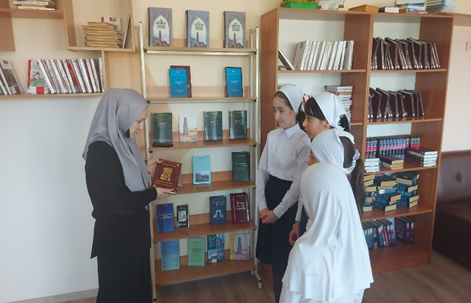 С 08 по 11 апреля 2024 года педагогом-библиотекарем Тазбиевой З.Х. организована и проведена книжная выставка произведений чеченских писателей «Нохчийн къоман йаздархой».