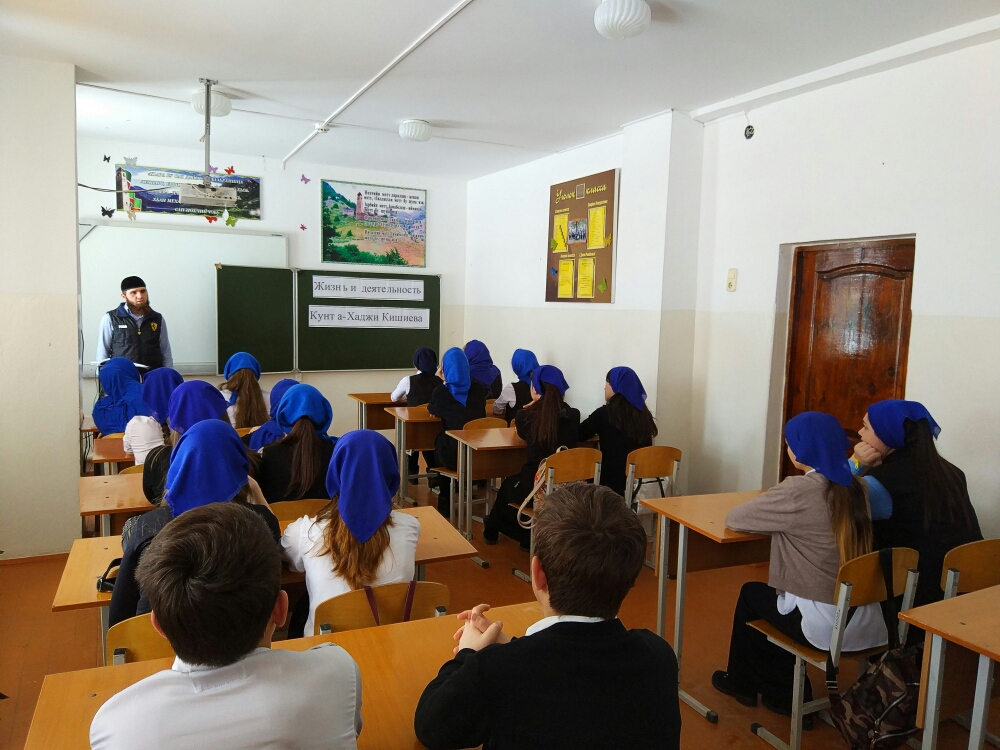 18.01.2018В МБОУ «СОШ с.Садовое» в первой половине января 2018 года проведены Мероприятия, приуроченные ко Дню эвлия-устаза Кунта-Хаджи Кишиева.