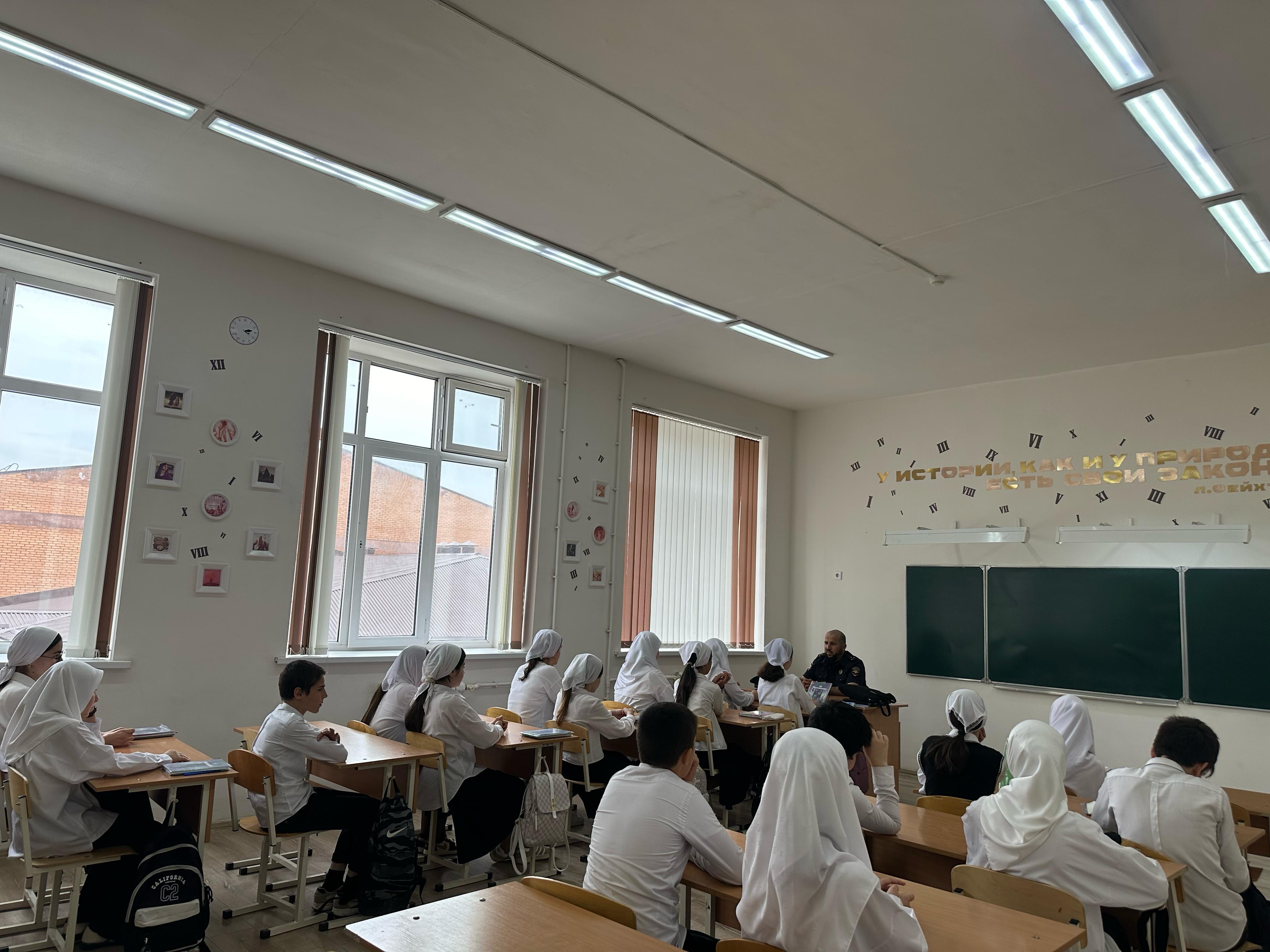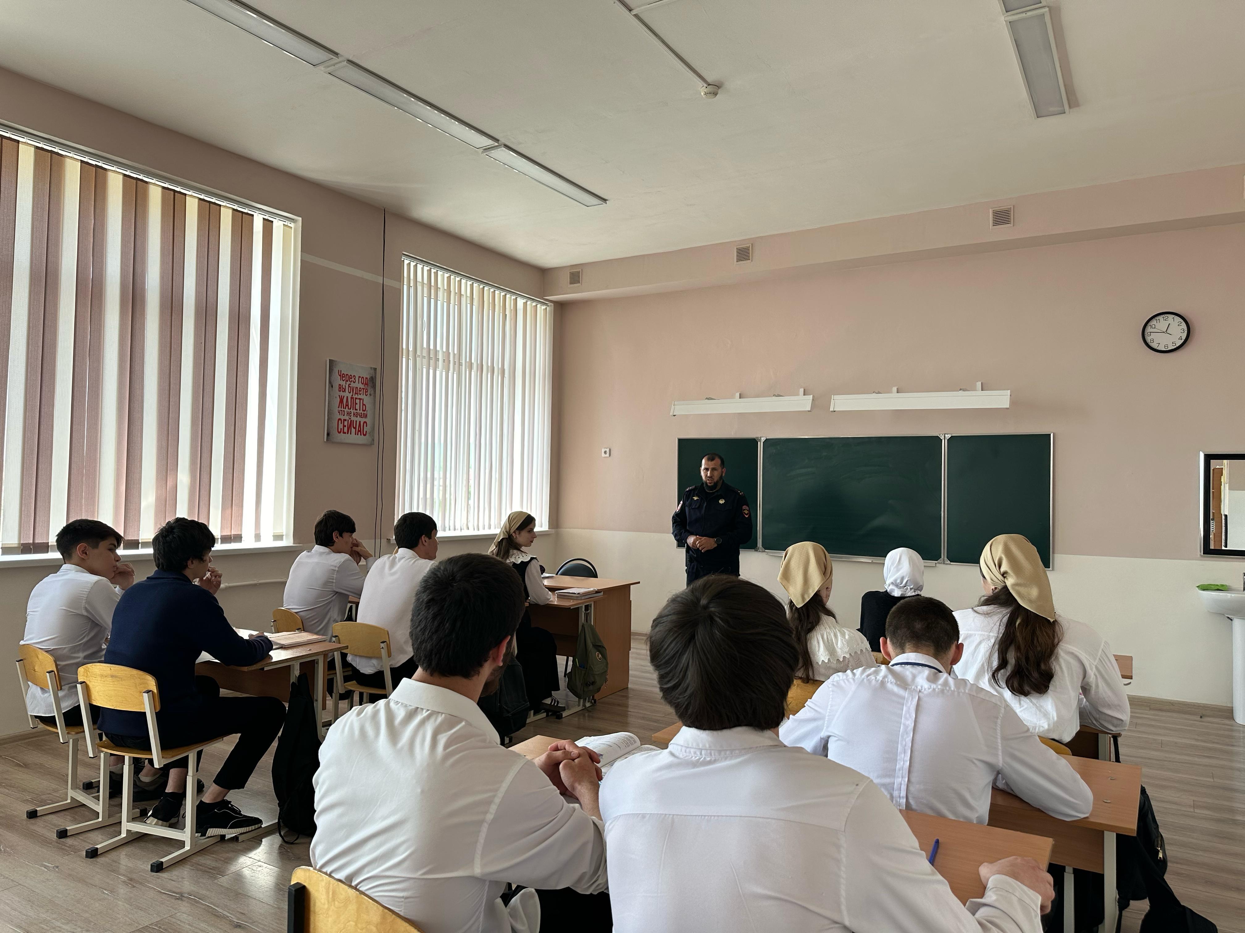 В МБОУ «СОШ с.Садовое им. А-Х. Кадырова» 15.05.2025 г среди учащихся 8-11 классов прошло внеклассное мероприятие «Героями не рождаются - героями становятся». Герои СВО живущие рядом.
