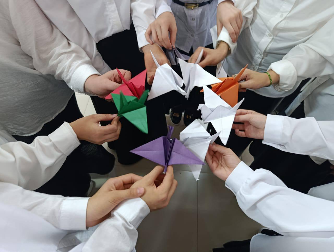 В день солидарности борьбы с терроризмом, 3 сентября 2025 года, в нашей школе состоялась акция «Белый журавлик». Неравнодушные сердца оставляли на стене маленького журавлика, сделанного своими руками, отдавая дань памяти жертвам террористического акта в школе номер 1 города Беслан в 2004 году.