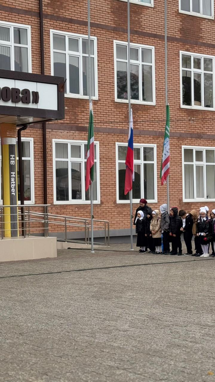 13.10.2025г. в нашей школе прошла еженедельная торжественная церемония поднятия Государственных флагов Российской Федерации и ЧеченскойРеспублики.