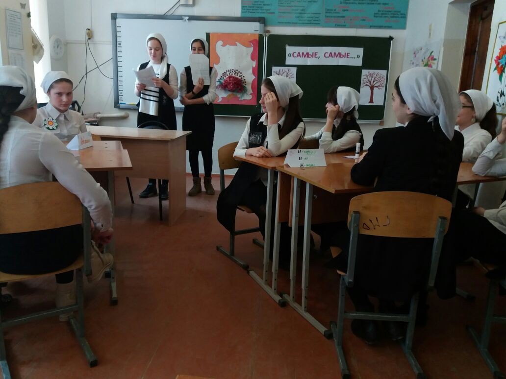 - Зам. лидера отряда «Юные Кадыровцы» - Хунарикова Х. и ответственная за творческое направление – Зубайраева Ж. провели Викторину «Самые, Самые…» среди девочек 7 «б» класса. Викторина прошла в очень интересной и веселой обстановке. Победила дружба.