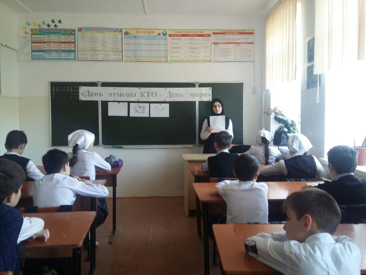 12.04.2018В МБОУ «СОШ с.Садовое» отмечалась очередная годовщина отмены режима контртеррористической операции на территории республики. Ко Дню мира были запланированы праздничные мероприятия во всех классах.