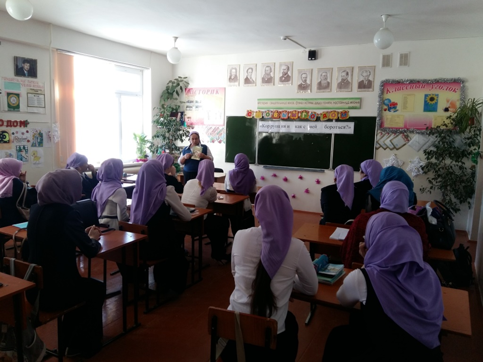 - Классный час «Нет коррупции!» - 9а класс/отв. кл.рук. Зубайраева Х.М.